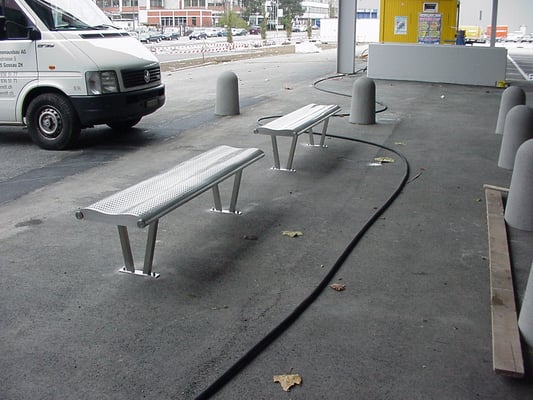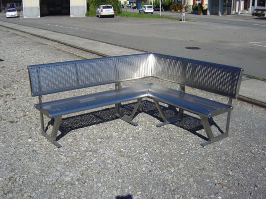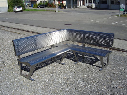 Bank komplett aus Chromstahl.